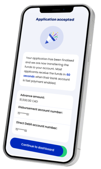 Cash in a flash! Have your pay advance funds quickly transferred to your account via real-time Interac payments.